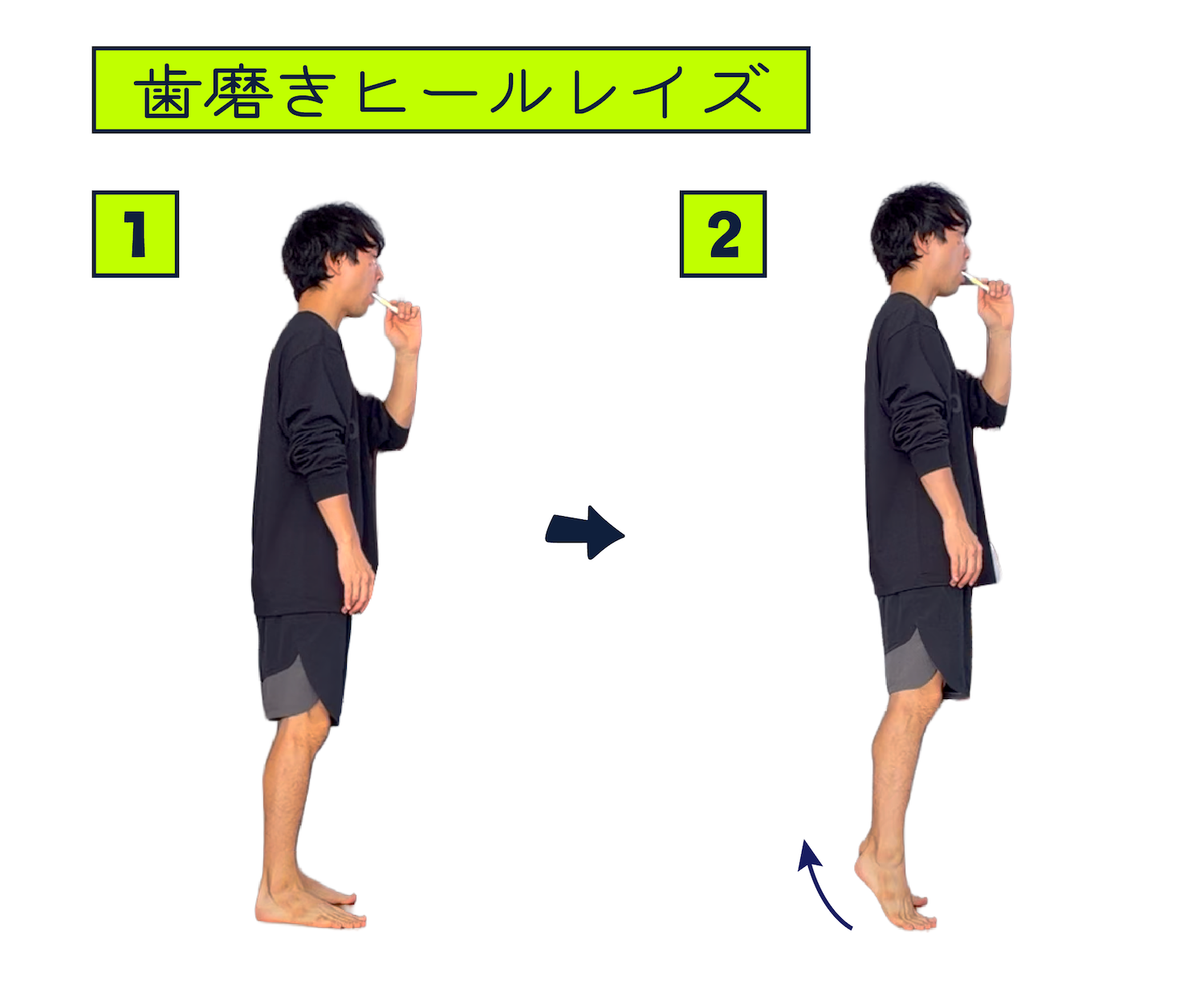 1)歯磨きしながら「かかと上げ(+スクワット)」